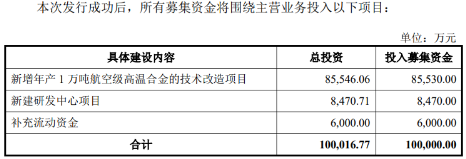 从募投项目来看,隆达股份拟将IPO募得的10亿元用于年产1万吨航空级高温合金的技术改造项目、新建研发中心项目及补充流动资金。不过隆达股份实际募集资金总额为24.12亿元,募集资金净额为22.01亿元,相较于原计划多了12.01亿元。