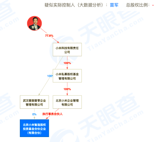 作为小米智造的管理方,小米私募通过全资控股的北京小米企业管理有限公司出资3000万元,占首次募集中的份额比例为0.47%。后者也是出资方中仅有的一家“无限责任”公司。