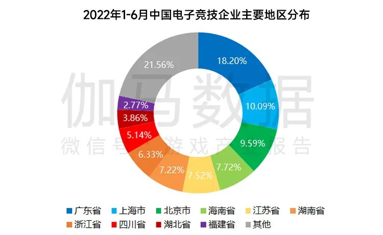广东省、上海市、北京市是电子竞技企业最多的地区