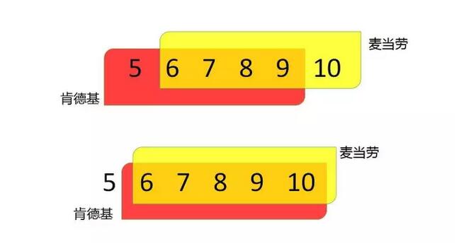 如果麦当劳和肯德基想各开5家店,麦当劳选择的是6、7、8、9、10,肯德基选择的是5、6、7、8、9。