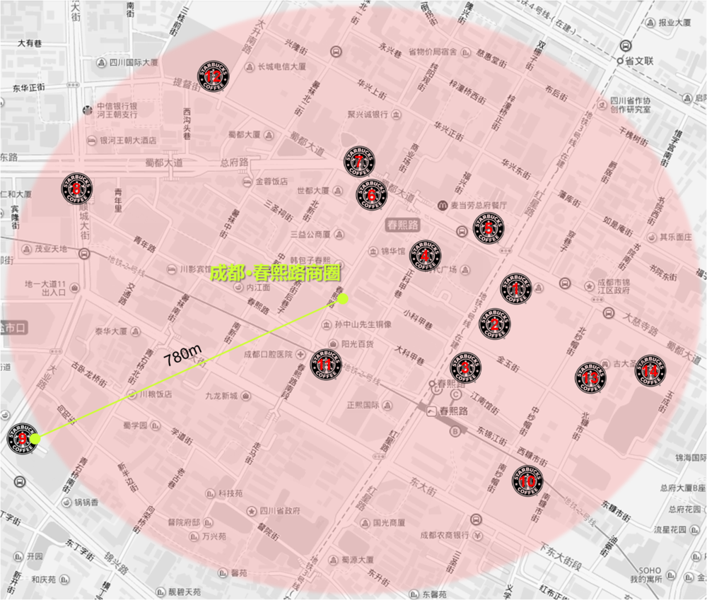 (成都春熙路商圈800m内竟藏了14家星巴克!)