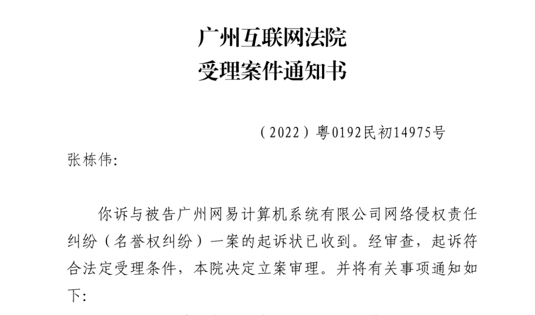 事情发酵后,张栋伟撰文《网易,好好做个人吧》。正是这篇文章遭到网易起诉,称张栋伟涉嫌造谣抹黑、严重误导公众、损害公司名誉等行为,要求张栋伟道歉,并索赔50万元。目前该案同样已被广州互联网法院正式受理。