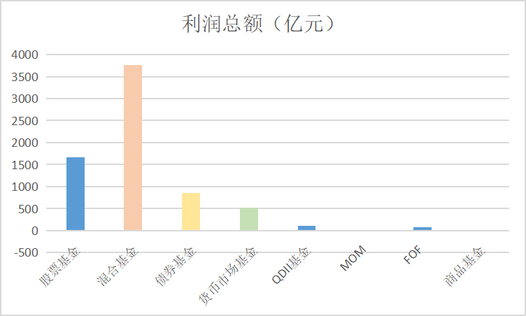 各个类型基金利润情况如下:股票基金利润1668.44亿元、混合基金利润3769.63亿元、债券基金857.01亿元、货币市场基金524.37亿元、QDII基金114.22亿元。