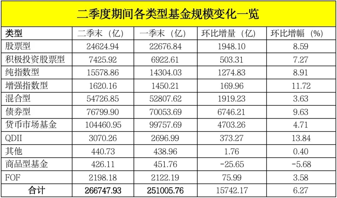 此外,债券型基金、纯指数型基金、股票型基金等品类均获得8%以上的单季度规模增幅。