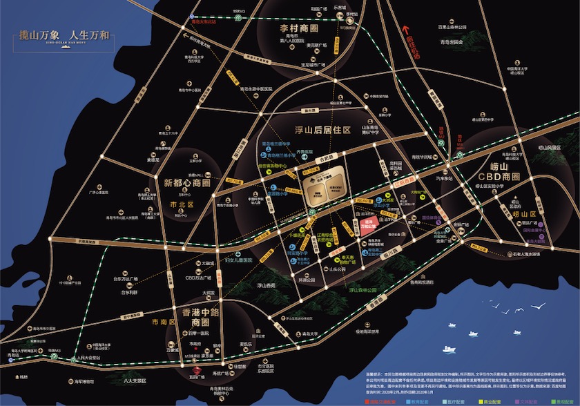 这里几乎是青岛主城面积最大的统一规划居住区域。从1998年浮山后西部开发大批拆迁安置房以来,二十多年的时间里一众房企大鳄在此“抢滩登陆”,楼群拔地而起,而周边的配套也在这个阶段里迅速成熟: