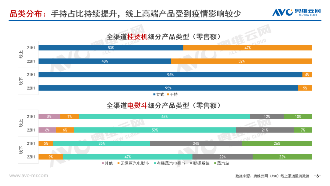 手持挂烫机占比持续上升,线上高端产品受影响较小