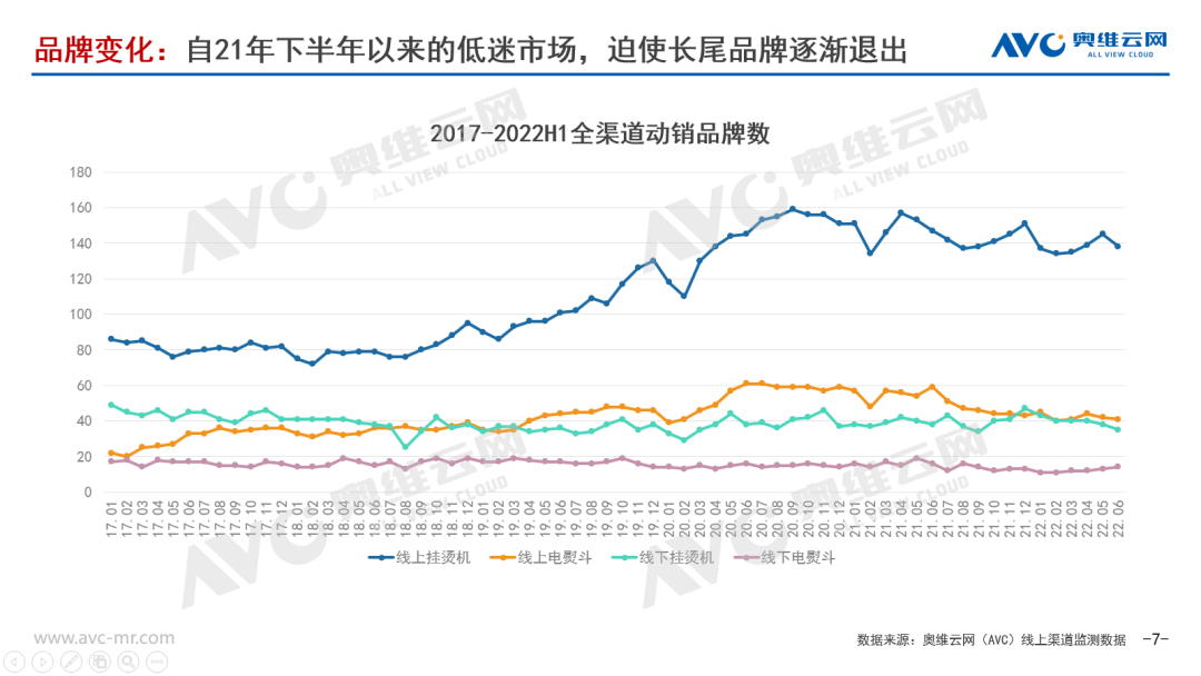 随着衣物材质的改变,越来越多的防皱、抗皱材质的应用,让熨烫需求逐渐减少,且自20年疫情以来,出行场景受到很大影响,导致需求进一步萎缩,部分长尾品牌选择退出。
