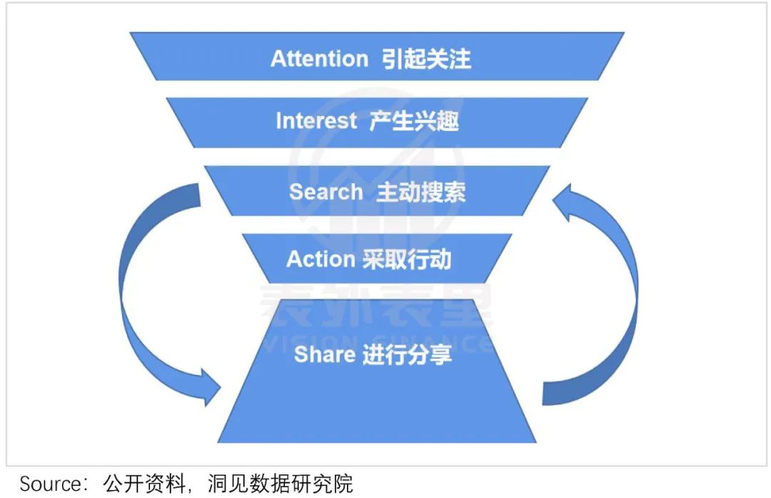 根据AISAS用户决策模型,用户对于一个新产品的认知分为注意、兴趣、搜索、行动、分享5个阶段,认知越往后,转换路径越短,转换成本越低。
