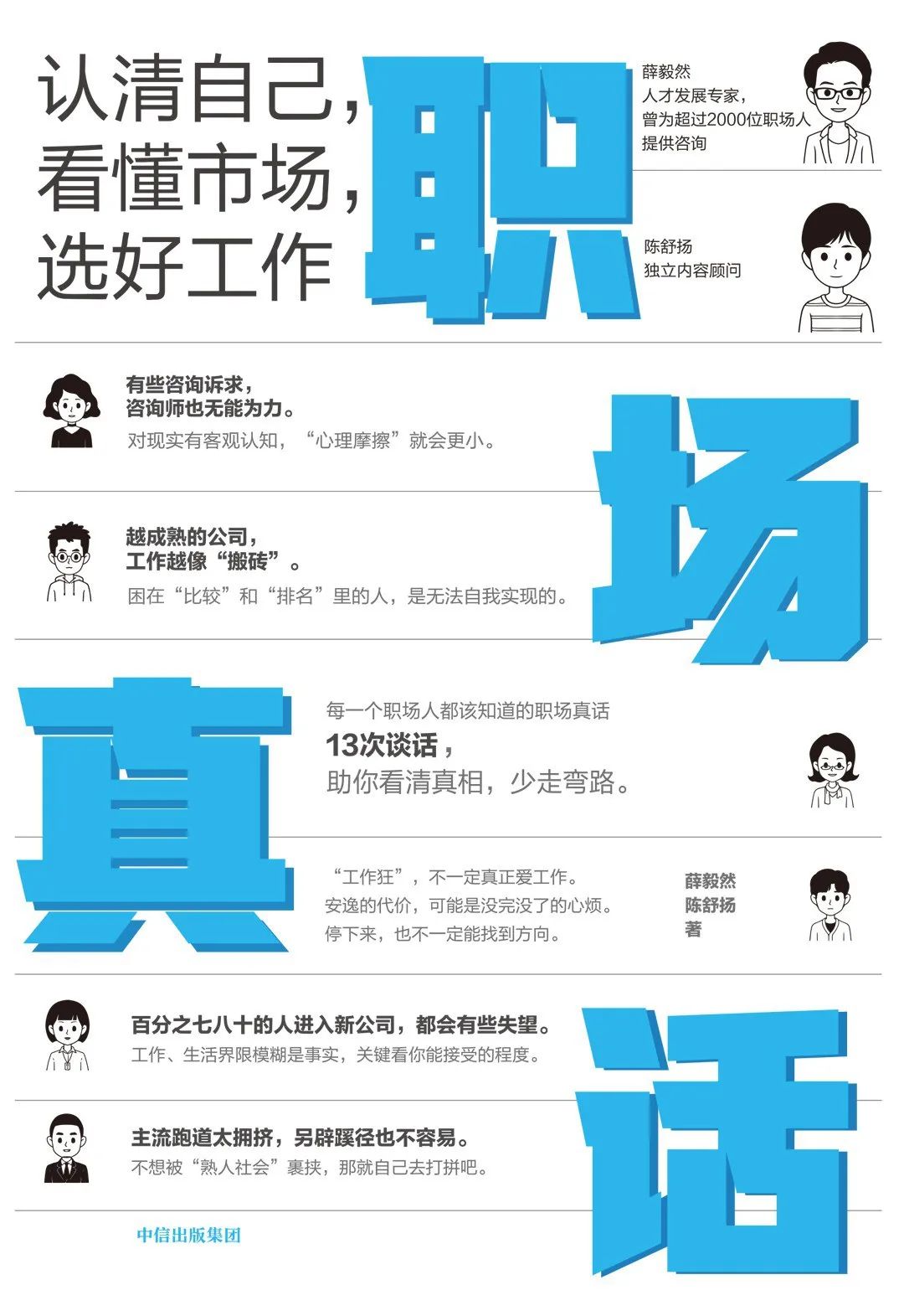 由薛毅然、陈舒扬撰写的《职场真话:认清自己,看懂市场,选好工作》一书,通过对话的形式,针对当代年轻人面临的种种职业发展困境、选择与应对方式进行了梳理。