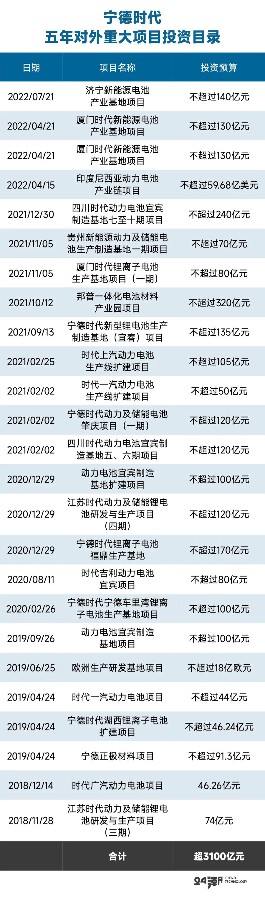 而这已是今年宁德时代发布的第4个百亿级投资项目,仅这4大项目的总投资预算近800亿元。
