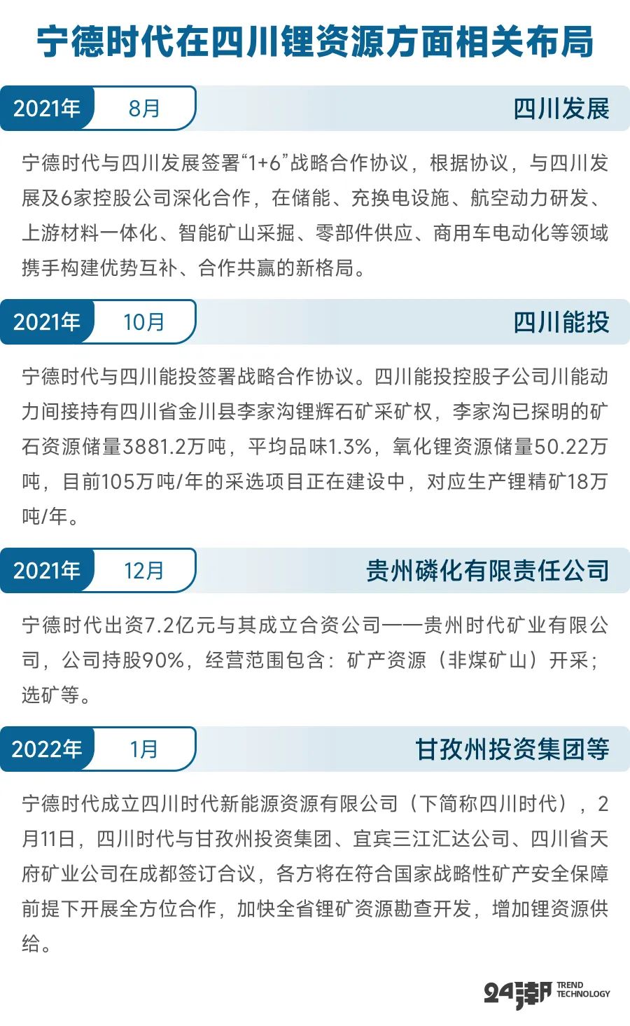 除此之外,宁德时代在中国锂矿重镇四川也投入了重兵。