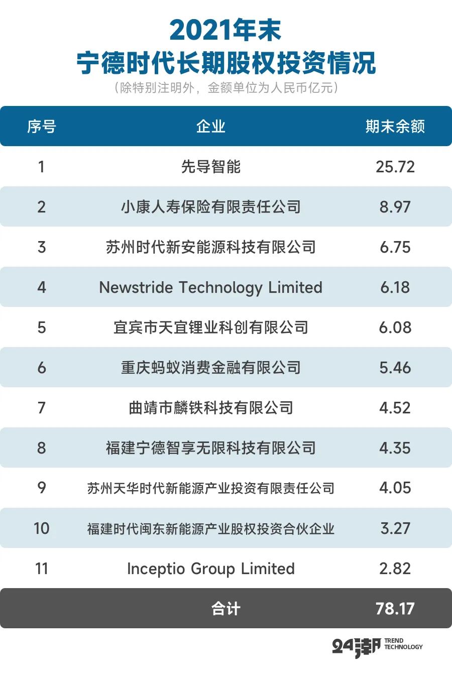 从长期股权投资数据看,先导智能(300450.SZ)称得上宁德时代第一大投资项目,截止目前宁德时代持有后者7.15%股权,为先导智能第三大股东。