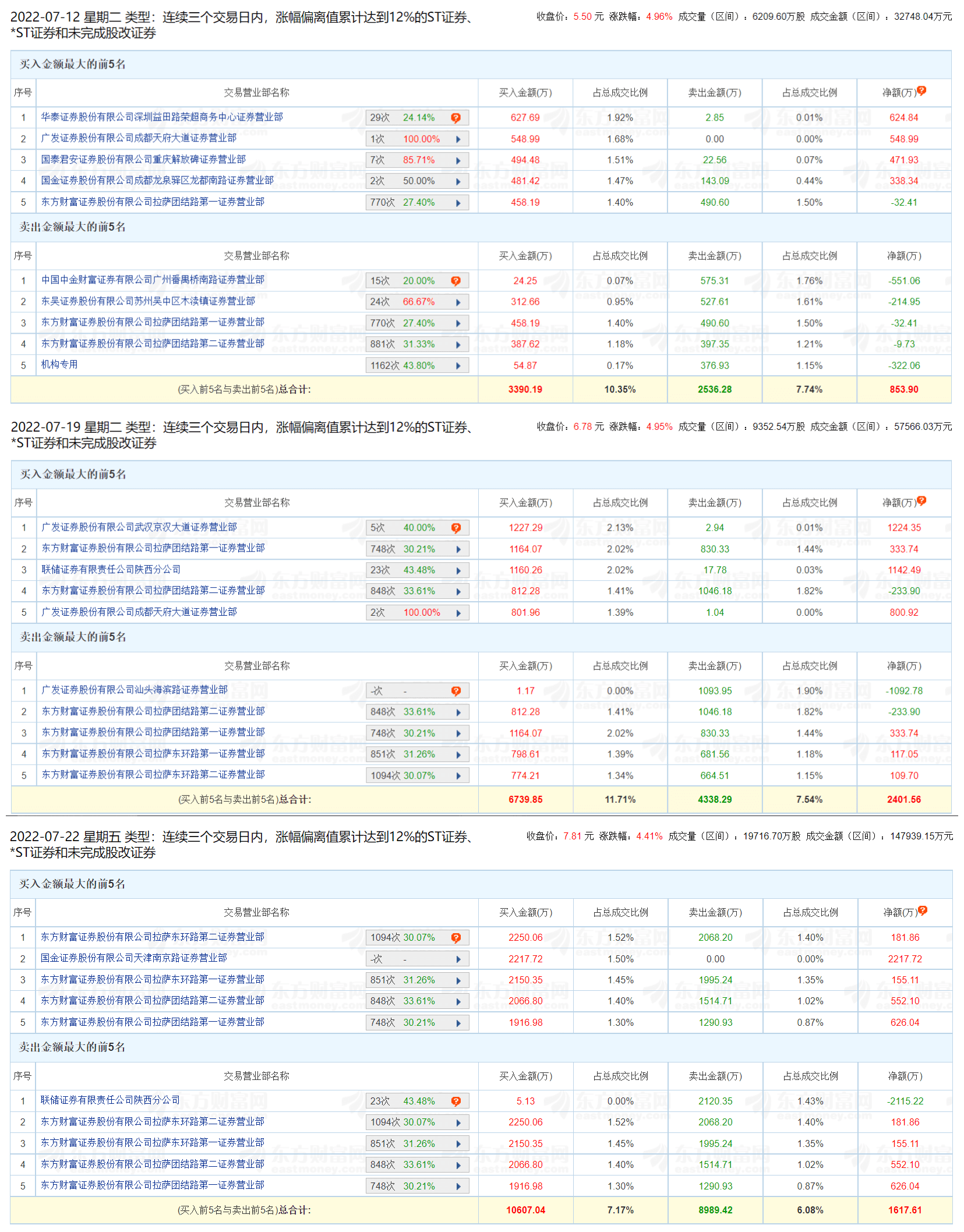 龙虎榜显示,一线游资在此次推高*ST必康股价过程中扮演重要角色。7月12日、7月19日及7月22日,东方财富证券拉萨团结路、东方财富证券拉萨东环路频现*ST必康前五大交易席位。