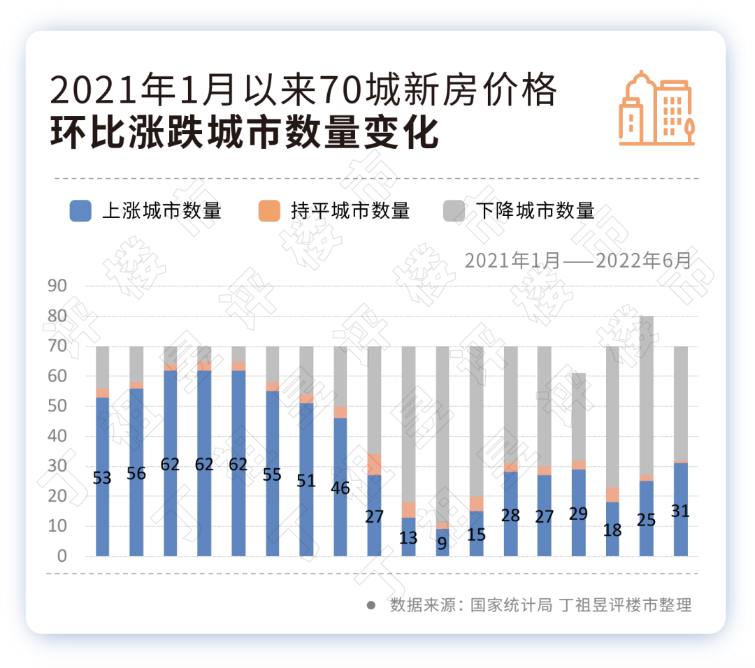 房价上涨的城市数量在减少,下跌城市数量在增加。