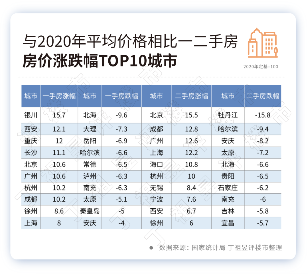 无论是一二手房同环比涨幅情况,还是对比2020年平均房价,杭州和成都两个城市表现都比较抢眼。