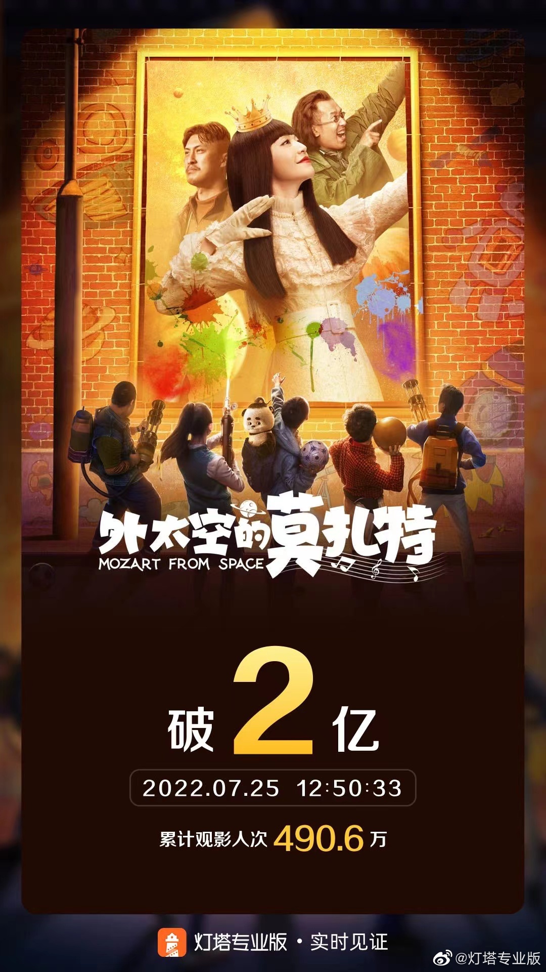 据灯塔专业版实时数据,截至7月25日12时50分,影片《外太空的莫扎特》票房突破2亿元。