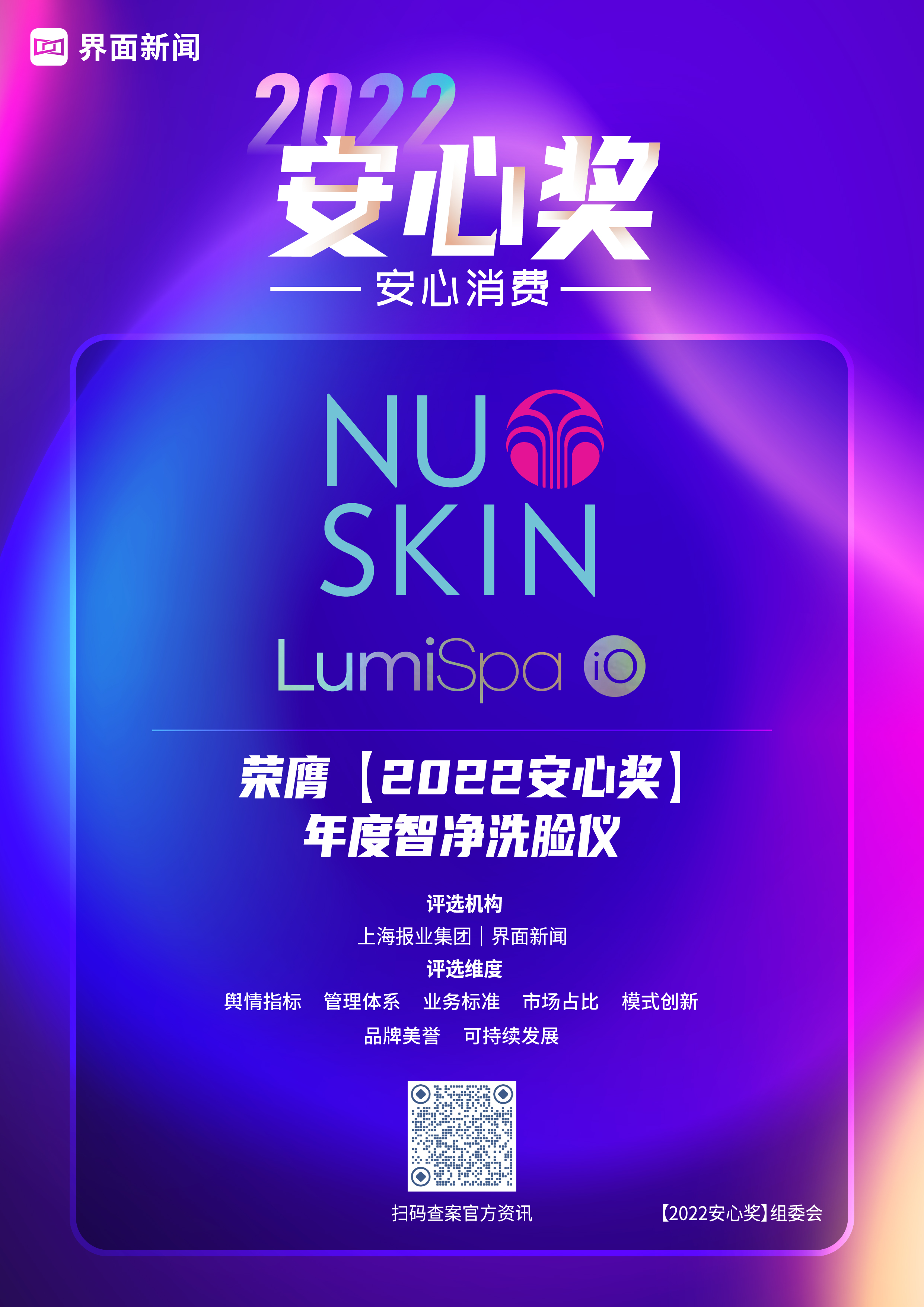 7月28日,上海报业集团|界面新闻主办的第五届【界面新消费盛典】云峰会正式公布了本届【2022安心奖】获奖品牌。围绕 “买的安心、吃的安心、用的安心、玩的安心、住的安心”的核心价值,来自生活服务、家电、家化、美妆护肤、美容仪、食品、乳品、饮品等100多个领域近2000个优秀品牌、产品,突破重围,斩获年度Top50大奖。如新ageLOC LumiSpa iO持续拓展美容仪器产品的广阔天地,当之无愧的荣获年度智净洗脸仪荣誉。