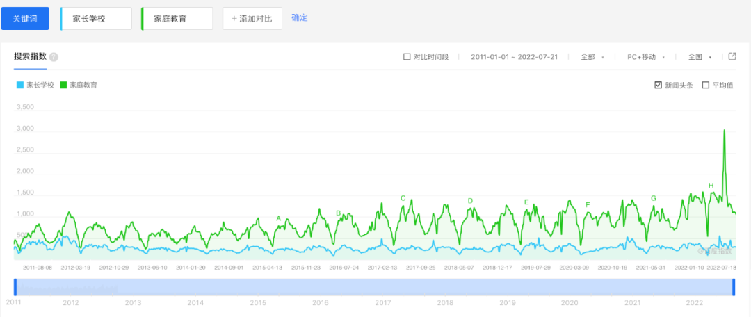 “家长学校”、“家庭教育”词条百度指数