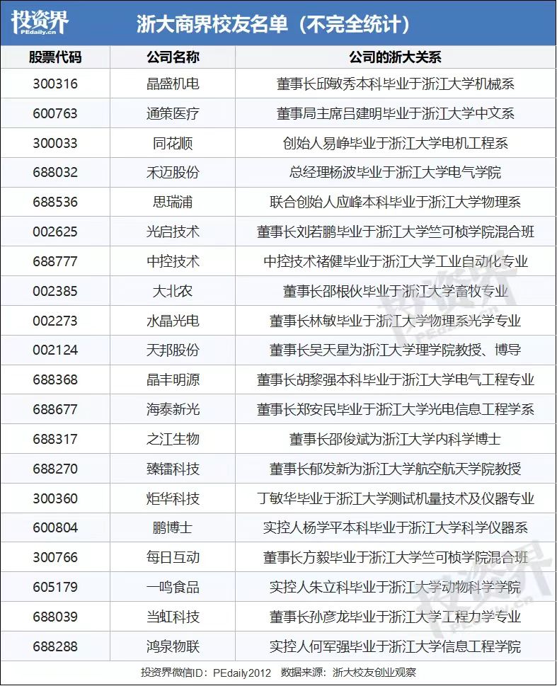 这些只是冰山一角——在去年连获两轮融资的自动驾驶系统研发商“飞步科技”,创始人何晓飞也是一名浙大教授;此外,水晶光电董事长林敏毕业于浙江大学物理系光学专业、炬华科技董事长丁敏毕业于浙江大学测试机量技术及仪器专业、光启技术董事长刘若鹏也毕业于浙江大学竺可桢学院混合班……不胜枚举。
