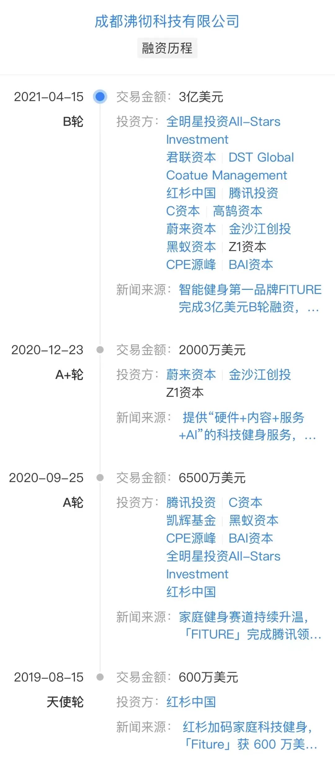 有报道显示,因为“红杉错失过‘健身界奈飞’Peloton,看到FITURE这个项目,下手尤为果断。”