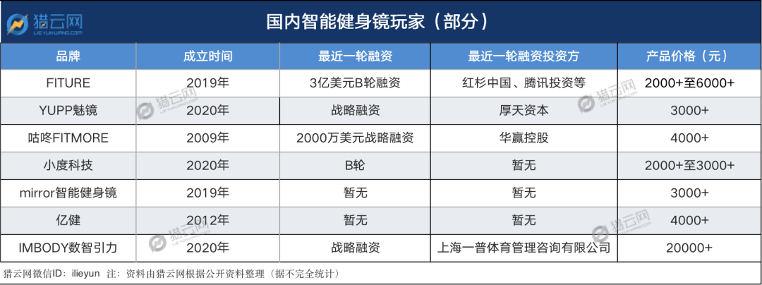 与此同时,猎云网还注意到,即便资本市场上智能健身镜打得火热,但最终落地到消费者端,面世的产品少之又少,目前各大平台上能看到面向C端的智能健身镜品牌寥寥无几,位列淘宝搜索前列的仅有FITURE、mirror、小度添添、IMBODY等品牌,且可选择的款也仅为个位数。