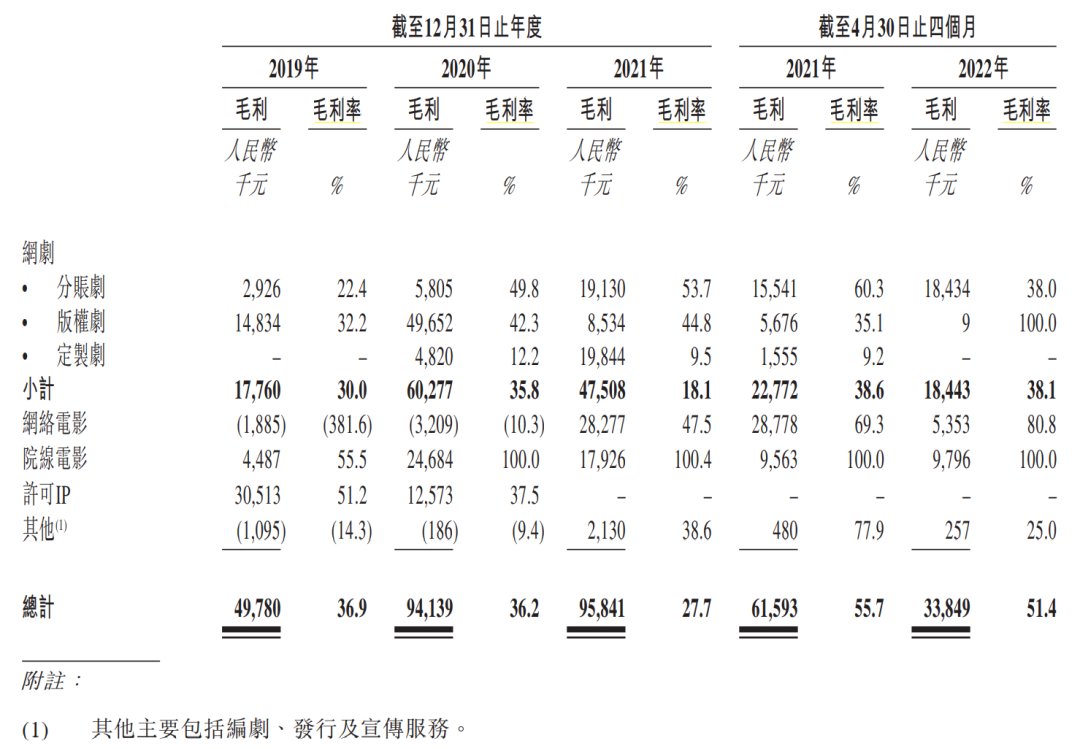 然而,尽管凭借与阿里的股权绑定,耐看娱乐拿到相应的定制剧资源并非难事,但是,这类内容的局限在于,一方面加剧公司对阿里系的依赖,另一方面还有更现实的问题,即定制剧过低的毛利率。