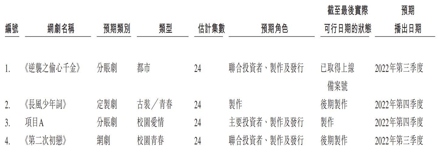 但强波动性意味着高风险,2022年前四个月,公司分账剧的毛利率便骤降至38%。且就当下的行业现状来说,弗若斯特沙利文数据显示,2021年至2026年,预计分账剧数目将从70部增长至90部,复合年增长率仅5.2%,而在2016年-2021年,这一数据则估计为28.5%。再加上随着视频平台的付费用户规模见顶,分账剧短期的票房上限难有大的突破,也很难真正带动公司的业绩增长。