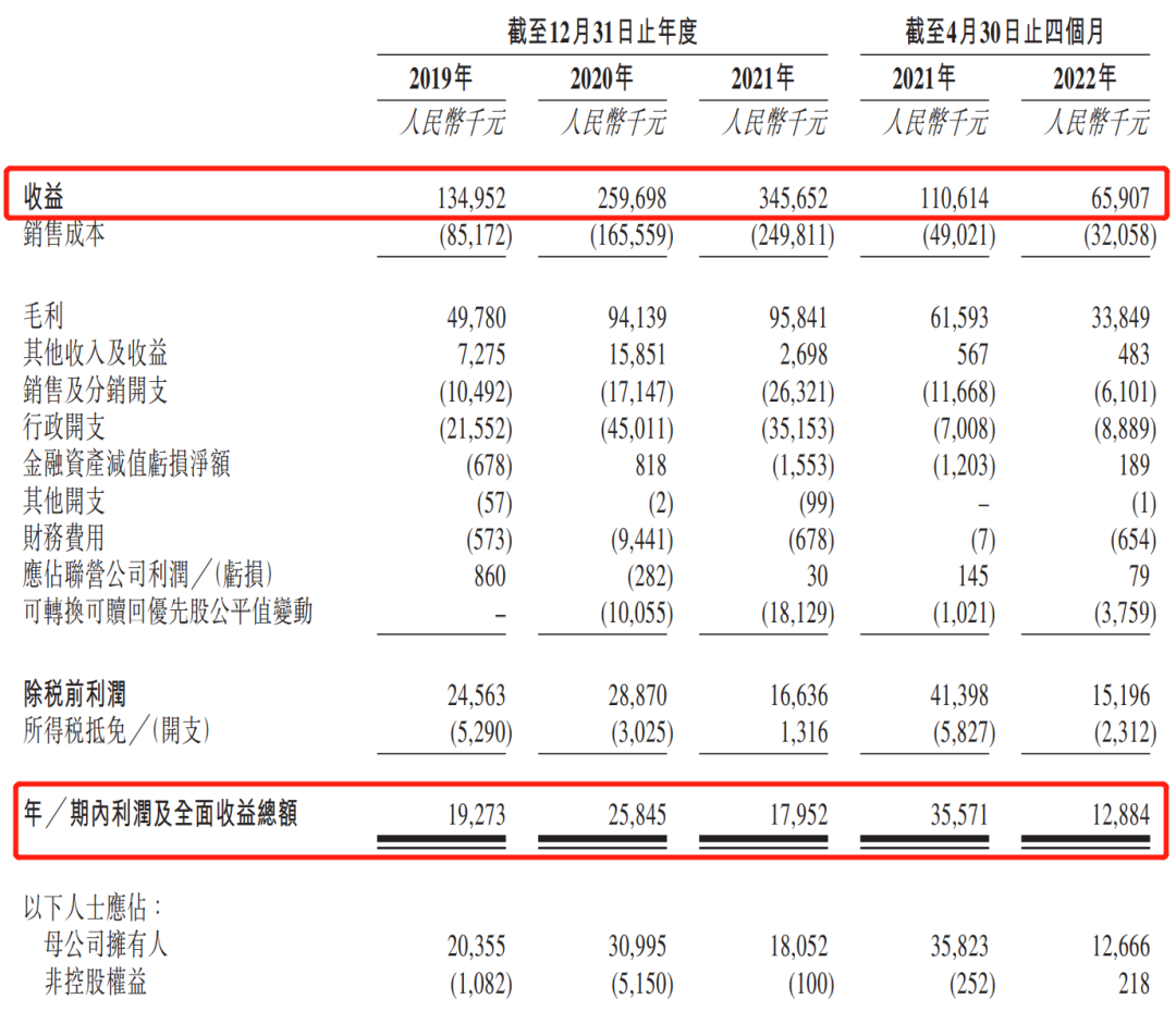 招股书数据显示,2019年至2022年前四个月,耐看娱乐的营收分别为1.35亿、2.6亿、3.46亿、0.66亿,相对应地,公司净利润分别为1927万、2585万、1795万、1288万。显然,耐看娱乐的整体业绩已经呈现出增收不增利的趋势,公司净利润在近两年逐步下滑。