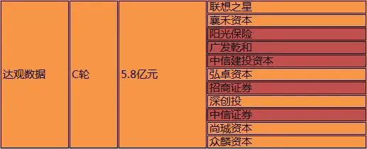 3月9日,文本智能处理与办公智能应用供应商达观数据宣布,已于近日完成5.8亿元C轮融资。本轮投资方包括中信证券、招商证券、广发证券和中信建投四家证券集团,以及深创投、襄禾资本、弘卓资本、尚珹资本、众麟资本、联想之星、阳光保险集团等。