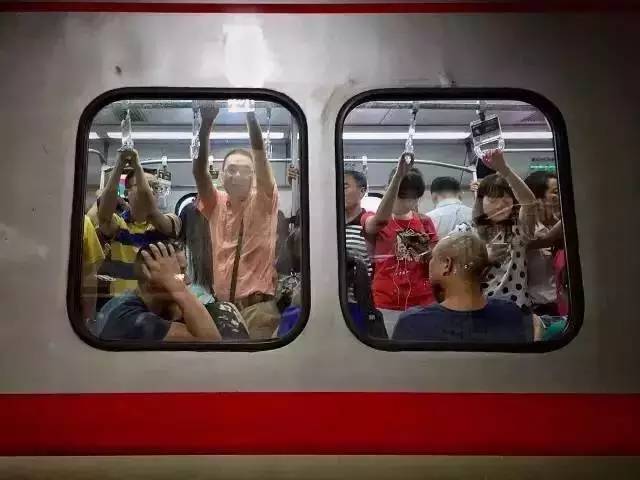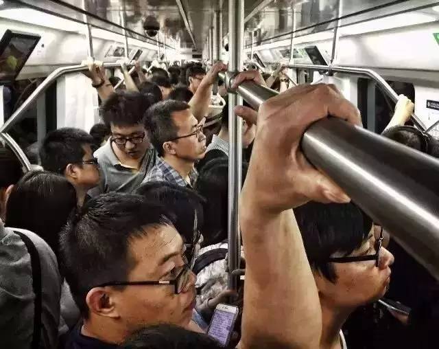 这就是北京地铁中最真实的状态,不论多么光鲜的身影,都消融在地铁的人潮中。
