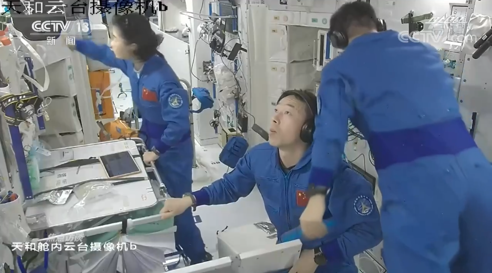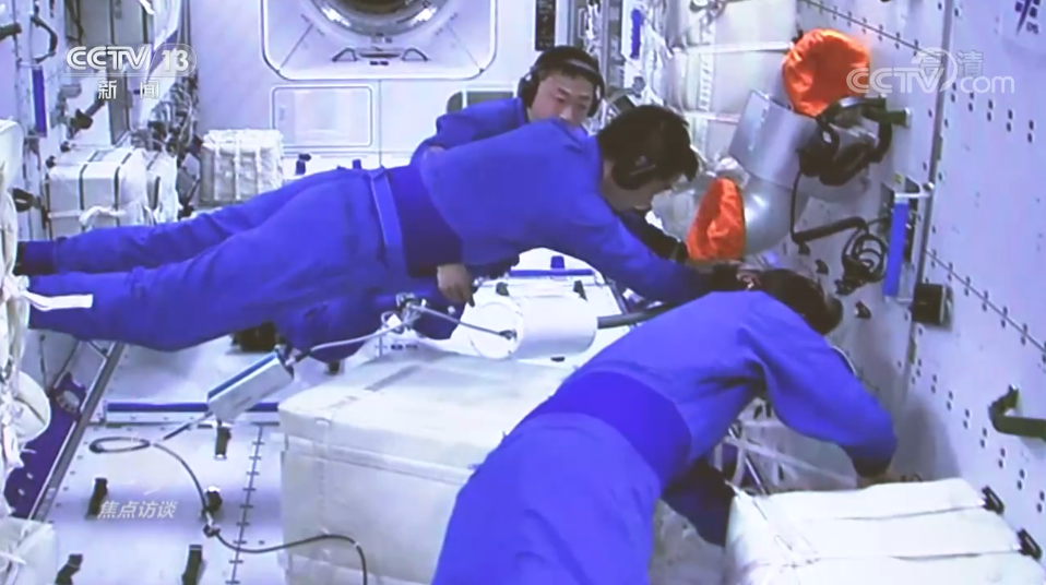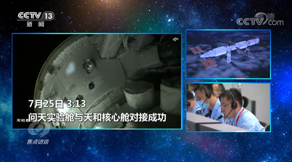 记者在北京航天飞行控制中心的大屏幕上看到,陈冬、刘洋、蔡旭哲三名航天员正在忙,可能有细心的观众看出来,他们工作的环境跟以前不太一样,他们现在的位置是今天凌晨才刚刚和天和核心舱成功对接的问天实验舱,此刻,正在安装无线发射装置。从昨天下午的成功发射,到今天的完美对接,问天实验舱的到来,不仅为航天员们提供了更大的在轨工作、生活空间,也标志着中国空间站和国家太空实验室的建设向前迈出了关键一步。