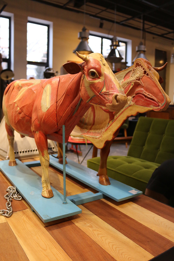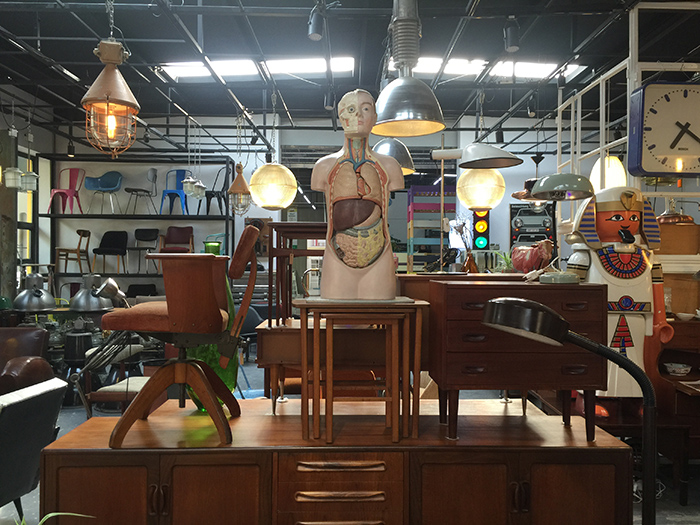 A+的另一个特别之处,在于即使是那些冲着牛肉面来的人,也会逛逛这里的家具店。说到心爱的家具,一直话不多的先生也开始变得健谈。在这里售卖的家具,几乎都是先生从全球各地淘来的二手品,风格也是较为统一的欧式工业风格,先生还会为自己收购的家具溯源、先去了解它当年的厂家和背后故事。这些家具时间点上基本控制在第一次~第二次世界大战左右时期,先生说因为当时战后重建的物资中,大量的铸铁、皮革、木头等素材被应用于家具制造,所以这一时期的家具具备简单、高机能性、更具重量感的特质,因此会令人着迷。