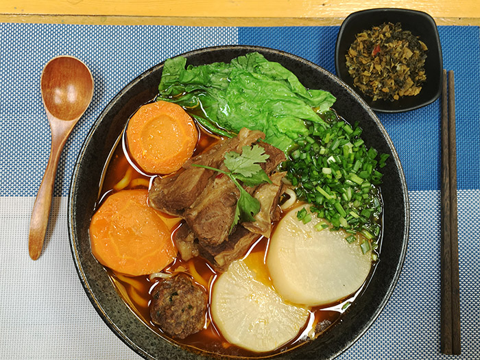虽然没有实地品尝过真正的台湾牛肉面,但面前的这一碗,比大街小巷的兰州牛肉面精致丰富,又不似很多日本拉面汤头清淡。当抛去所有的形容和溯源之后,对于嗜面的北方人来说,仍不失为一碗好吃的牛肉面。