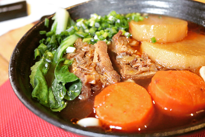 答案是,真的有,因为细节真的多。为了做好这碗面,先生先是跟妈妈学习了传统台湾牛肉面的做法,经过来来回回的调试之后,将它改良得更适合北方人的口味。在食材方面,不仅澳洲肥牛,还有日本龟甲万酱油、坚持从台湾带回来的红标米酒和冈山豆瓣酱,再经过小火慢炖4小时,才能将牛肉做得如此入味。鲜美的汤味也和味精无关,完全来自熬制40小时的高汤。所以尽管味觉是这么私人的事情,大家还是在一碗面上达成了共识。