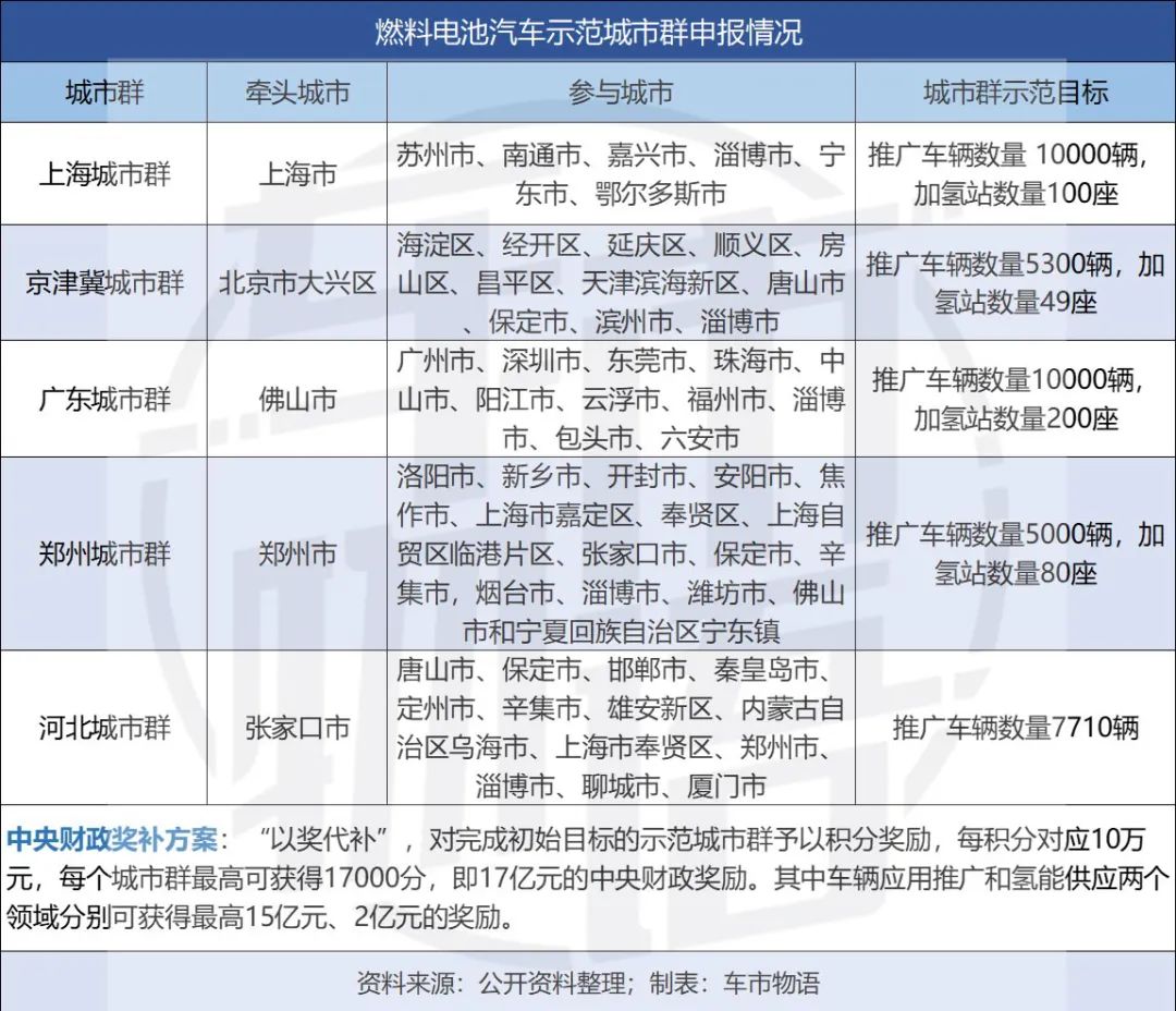 2022年示范城市群项目已经正式启动,目前氢燃料电池汽车示范应用城市群已有5个:河北、河南、京津冀、上海和广东城市群。
