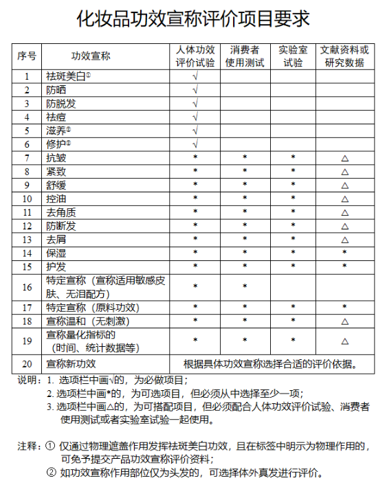 新规范和规定中,对功效宣称更加严格,更加强调功效宣称的科学性、准确性与可靠性,对特定的功效,新增功效宣称评价试验,还包括人体功效评价实验、消费者使用测试、实验室实验、文献资料或研究数据等诸多要求。