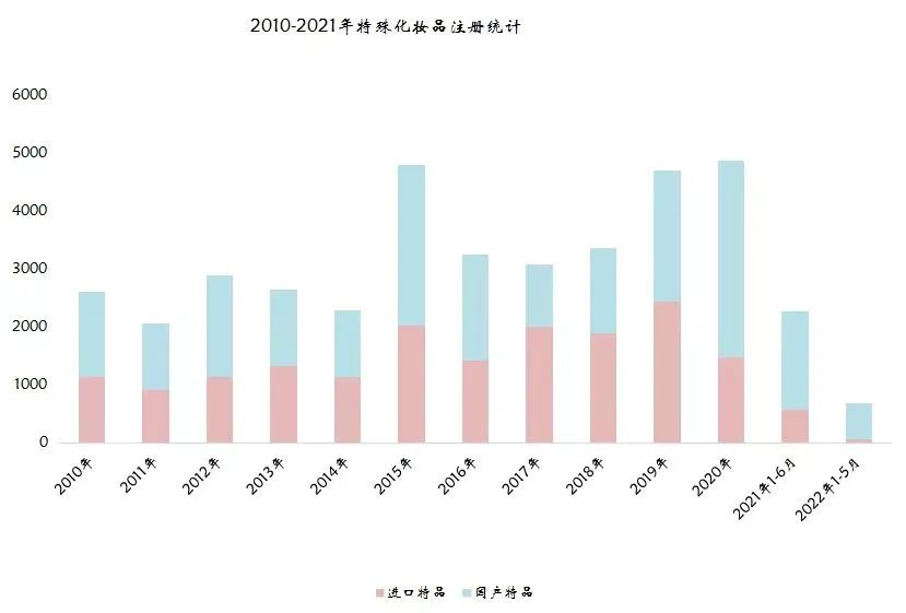 不只是普通化妆品,2022年上半年新增特殊化妆品注册数量更是锐减。