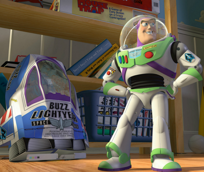 巴斯光年在电影里总是认为他是真实存在的人,而不仅仅是个玩具而已。但是除了总是口头上否认之外,在每次有人类进到屋子里的时候他却像玩具一样一动不动,这还是很奇怪的。