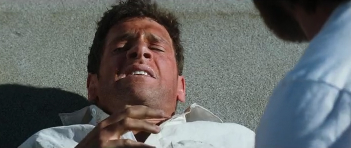 众人寻找了几天的准新郎道格,最终在拉斯维加斯的一个酒店屋顶被找到。但是在夏天的内华达州是极其炎热的,只有天知道他身体里是储存了多少能量,不然他早就会因严重脱水得送进医院了。不过另一方面,电影里出现的老虎和小孩还是挺“符合逻辑”的。