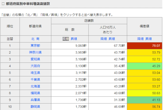 据日本总务省统计局发布的数据,中华料理店数量仅次于咖啡店和一般食堂,排名第三。