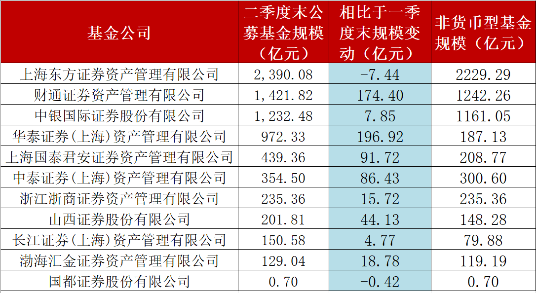 随着公募基金二季报披露结束,持有公募牌照的券商和券商资管公司各项数据同步出炉。