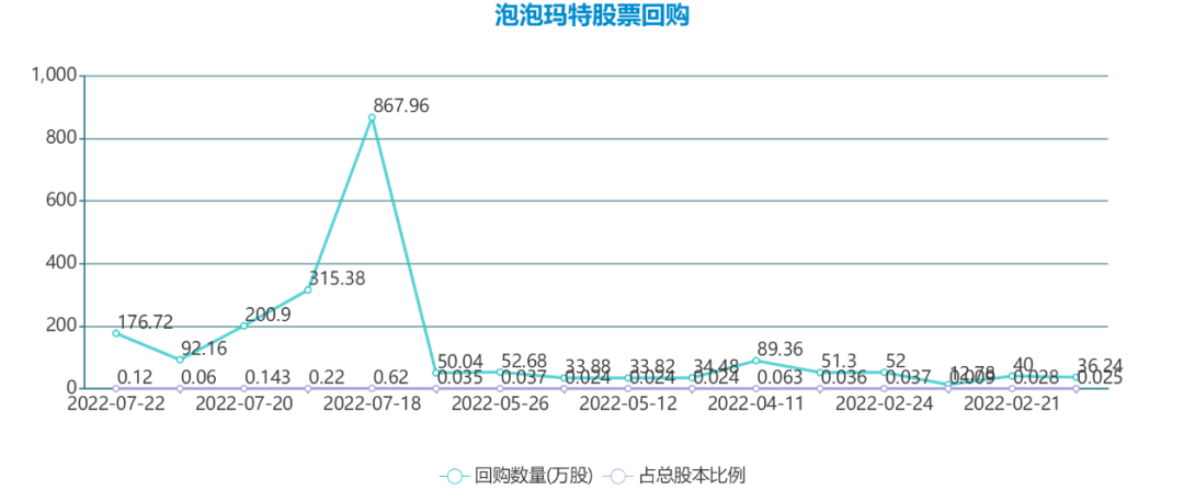 一路下跌的股价、市值缩水80%,是泡泡玛特无法避及的“痛”。因此,如何提振股价,是其近半年来一直想要解决的问题。而回购股票有较大的概率能拉升股价,并提高每股收益。