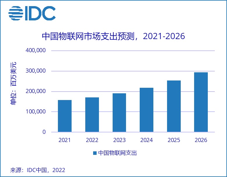 通过报告显示出,我国将会成为全球最大物联网市场国,而制造业、政府、零售及公共事业是物联网支出较高的行业维度。IDC预测,到2026年以智慧工厂为代表的制造行业,以智慧城市为代表的政府行业,以线上线下全渠道运营的零售行业,和以智慧电网为代表的公共事业行业,上述四大行业将占中国企业级物联网市场支出的60%以上。此外,智慧楼宇(服务行业)、智慧物流(交通行业)、智慧医院(医疗行业)也具有巨大市场增长潜力。