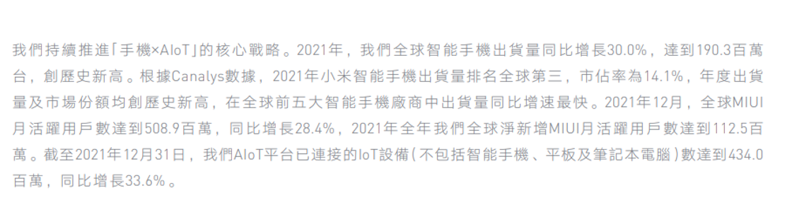这点在小米的财报中也有体现,小米的财报在描述IoT业务发展成果时,会陈列设备连接数、MIUI和小爱同学的月活。