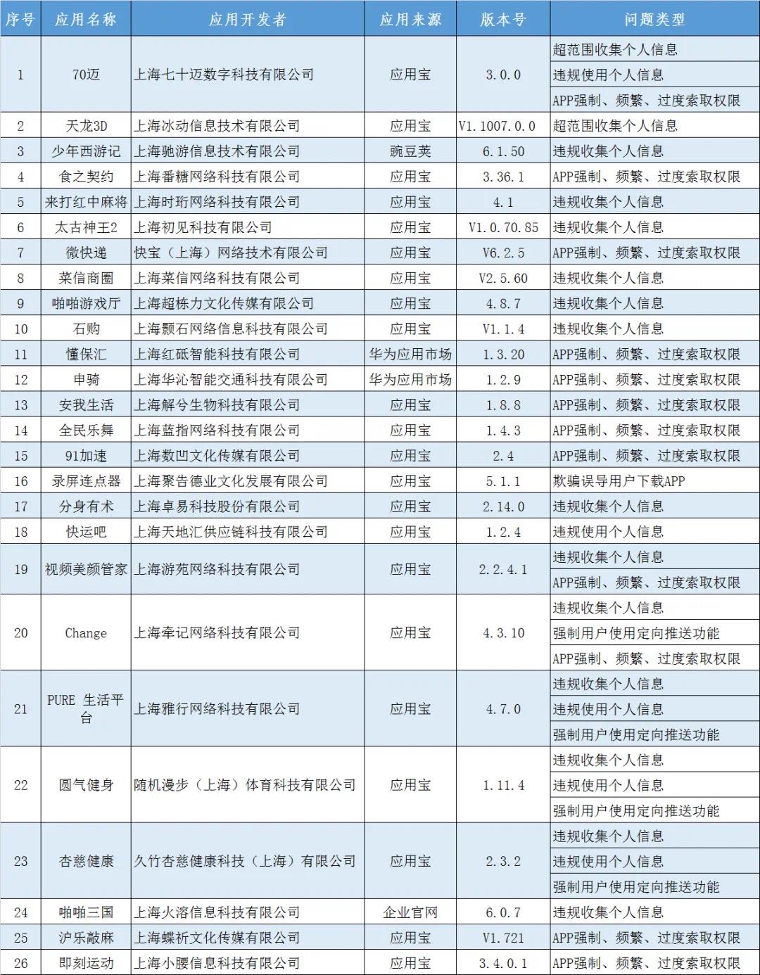 7月26日,上海市通信管理局发布关于侵害用户权益行为APP的通报(2022年第一批)。