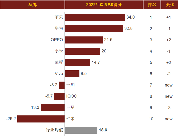 欧美运营商衡量手机品牌的重要指标是NPS(净推荐值),NPS值代表了用户对手机的满意度。目前国际主流评级机构还暂未公开对vivo的评级,但可以参考Chnbrand发布的国内品牌NPS得分情况,数据显示vivo仅为8.5分,位居第6。