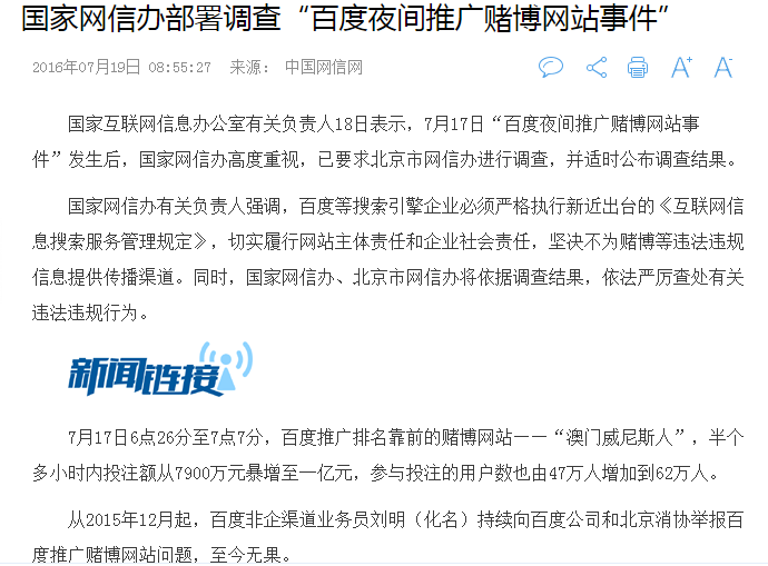 历史的价值,就在于以史为鉴,继往开来,让后世不重蹈历史上失败的覆辙。然并卵,百度改邪归正了吗?看下面一则新闻截图就知道了。