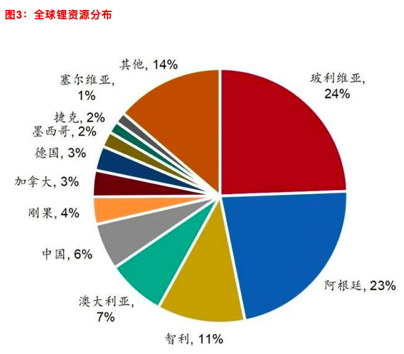 招商银行研究院的《锂行业深度报告》中指出,近年来锂矿产量增速波动较为剧烈,澳大利亚是主导全球产量变化的核心国家。全球锂资源分布不均,主要集中在南美三角区和澳大利亚。两地锂资源占全球总资源量的65%。中国则位居第五。