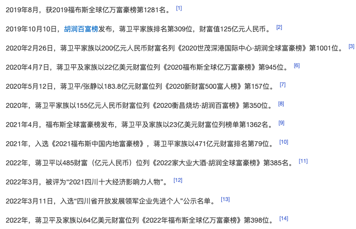 往后的日子里,天齐锂业还进军海外,多地布局。蒋卫平及其家族也多次登入富豪榜。2022年,蒋卫平及家族以64亿美元(约432亿元人民币)财富位列《2022年福布斯全球亿万富豪榜》第398位。