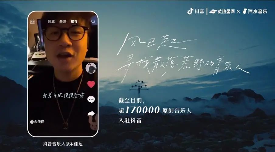 在这次抖音看见音乐计划“一直唱到有风来”音乐宣传片中写道,截至目前,已有17万原创音乐人入驻抖音,看见音乐计划已帮15万首歌曲乘风破圈。